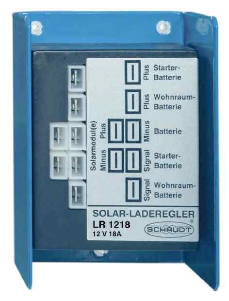 Schaudt Lippert laddningsregulator LR 1218 begränsar och styr laddningsspänning för solpaneler i husbilar och husvagnar som har Schaudt elektroblock (är osäker på om Schaudt Lippert LR 1218 passar till ditt elektroblock? Kontakta oss gärna så tar vi reda på det åt dig).